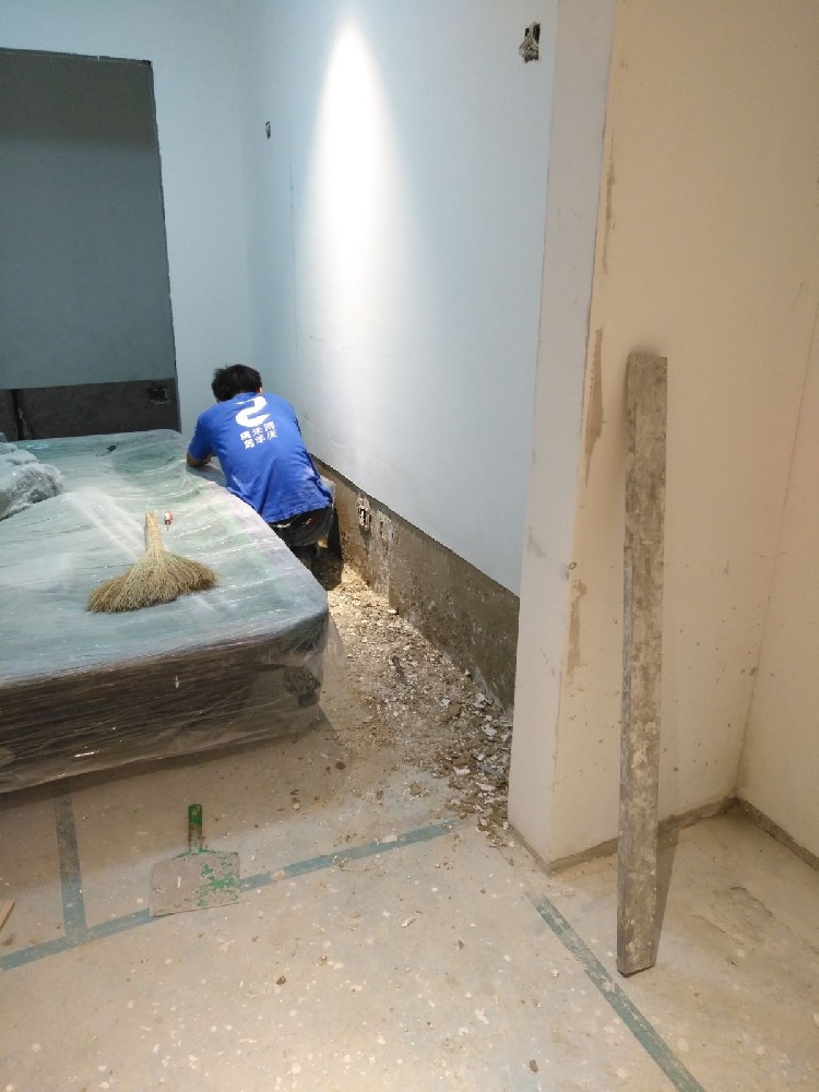 3、施工應嚴格執(zhí)行規(guī)范和工藝標準對于同類型的插座引線,引線方式為:如果插座位于墻體上部,在墻體上垂直向上開槽至墻頂安裝裝飾角的安裝線;如果它在墻的下部,垂直向下開槽,到安裝踢腳板的底部。凹槽的深度約為 15 毫米。將電線和電線放入保護線套內(nèi),平放在墻槽內(nèi),用水泥砂漿抹平,固定在墻內(nèi)。如果保留原來的插座,請重新安裝到原來的位置。如未保留,應先用磚塊填平,再用水泥砂漿抹平。沿地線在安裝踢腳線時位于踢腳板底部內(nèi)側(cè),沿頂角線在安裝裝飾線時隱藏在裝飾角線內(nèi)。