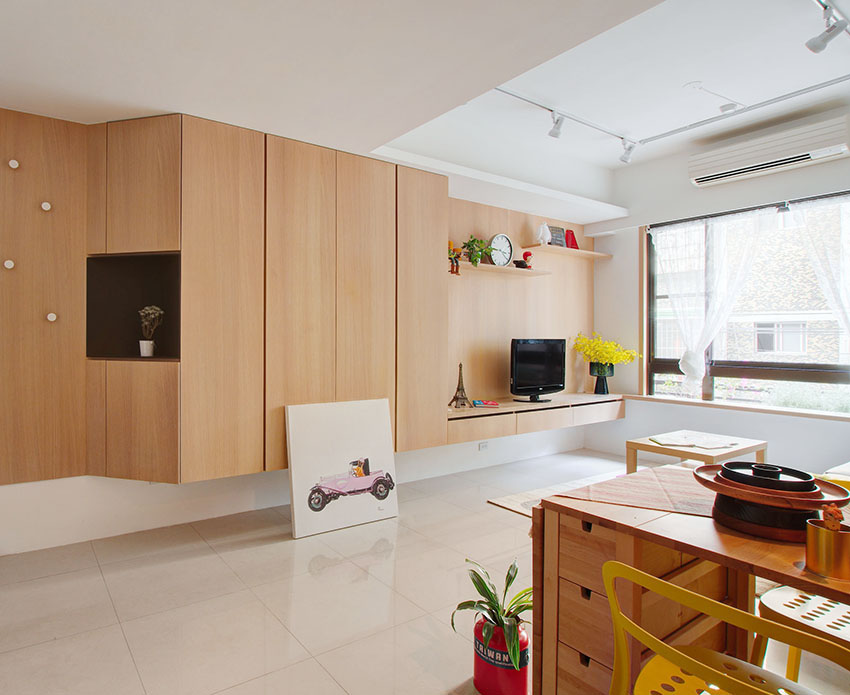 如果廚房外的區(qū)域也有一個小陽臺,那么不妨在陽臺的角落放置一個純粹清理外表的儲物柜,存放一些不常用的物品。也可以將清洗拖布、晾曬衣物的家務移到這里來進行,這樣就算廚房與衛(wèi)生間面積偏小,為了日常的清潔工作,也不必在廚房里放一個與設計風格徹底不搭界的清洗盆了。