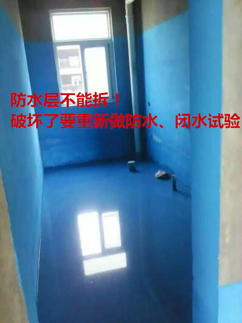 防水這個大家還是懂的,不想樓下跑來要咱們索賠,不能破壞喲,破壞了也要重新做防水,記得做閉水試驗(yàn)喲,夏天24小時,冬天48小時,樓下屋頂不滲水就ok。