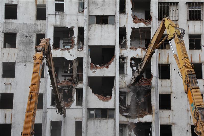 雖然用挖掘機拆除建筑物的速度較慢,但在樓層比較近的情況下還是比較安全的。