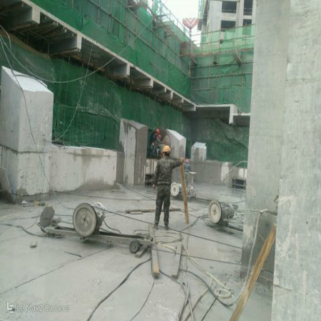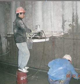 (1)、施工工藝:根據(jù)設(shè)計(jì)要求,必須對(duì)原結(jié)構(gòu)混凝土墻體進(jìn)行無(wú)振動(dòng)切割,以免對(duì)原結(jié)構(gòu)的破壞和干擾。針對(duì)這一要求,在切割施工中,使用水鉆切割施工具有施工速度快、效率高、無(wú)振動(dòng)、不會(huì)對(duì)整體建筑結(jié)構(gòu)造成破壞等優(yōu)點(diǎn)。