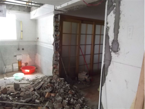 2.在敲墻的過(guò)程中,如果不考慮損失,我們可以選擇用大錘在墻壁上敲一個(gè)1到1.5米的缺口,缺口的深度可以達(dá)到墻的底部。 然后成功地撞上墻后留下的豁口,并系上一根結(jié)實(shí)的繩子。幾個(gè)人一起拉墻,很快就有一面墻倒了。如果考慮到成本,又不想損失太多,只能先把墻皮去掉,然后一層一層的剝,但是這種方法比較慢。