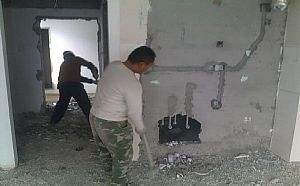 室內(nèi)裝修拆除方法依拆除部位不同而有不同的拆除方法。對(duì)外墻裝飾的拆除需要做好必要的 施工準(zhǔn)備,其拆除方向應(yīng)為自上而下,進(jìn)行逐層拆除,拆除前,要將本層外架進(jìn)行一定的全封閉處理,外架立面掛鋼絲網(wǎng)后,再滿(mǎn)掛草墊,外架操作層需要滿(mǎn)鋪鋼腳手板至墻邊,下掛兜網(wǎng),并在上面滿(mǎn)鋪上草墊,以防止碎片落入下方。具體的施工方法是 采用鏨子、手錘和電鏟等小型工具對(duì)外墻瓷磚或石材進(jìn)行人工拆除,使用手錘呈豎直方向?qū)γ婷鎸舆M(jìn)行拆除,嚴(yán)禁與墻體呈垂直角度實(shí)施拆除,以免損壞原結(jié)構(gòu)墻體。被拆除的混凝土塊,要統(tǒng)一從垃圾運(yùn)輸通道運(yùn)輸至首層,嚴(yán)禁在架子和腳手板等臨時(shí)支撐和原結(jié)構(gòu)板上堆放垃圾。
