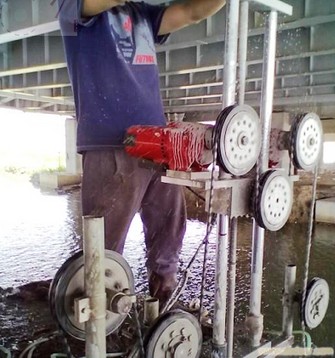異形金剛石繩鋸可根據(jù)客戶的特殊要求制定,主要是加工金剛石鋸片等鋸切工具不能完成的鋸切任務(wù),一般是直徑大或體積大的石材產(chǎn)品。