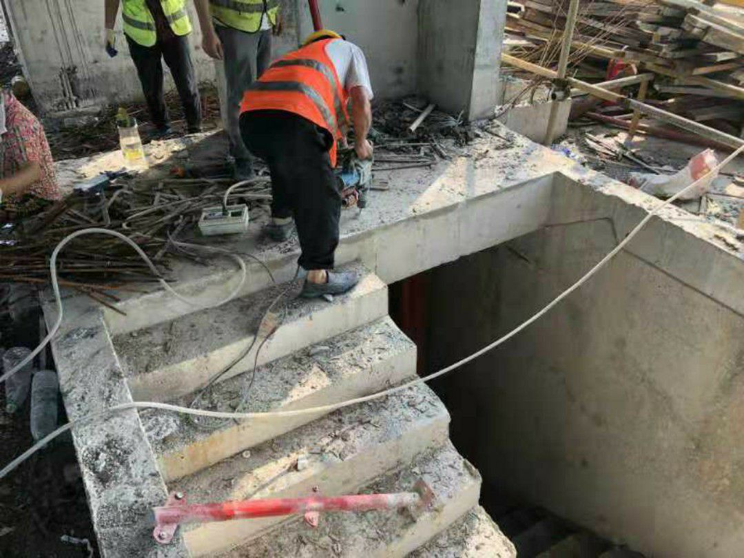 在上層安裝滑輪,如果地板不能安裝滑輪,架子頂部安裝滑輪,通過鋼絲繩或倒鏈包裹樓梯,然后沿著需要拆除的部分,鉆孔,樓梯和結(jié)構(gòu),完全斷開,通過滑輪,樓梯可以慢慢放下。