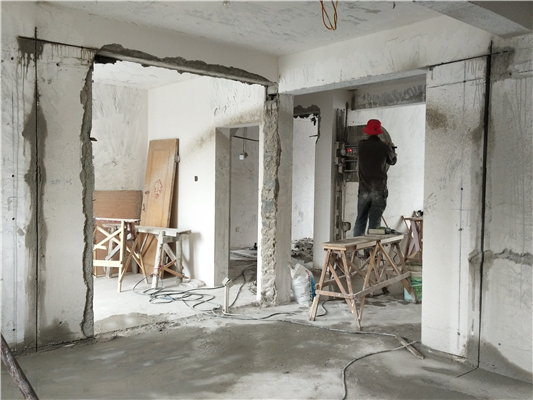 在敲墻的過(guò)程中,如果不考慮損失,我們可以選擇在1到1、5米的距離處用大錘砸墻,每處留有一個(gè)縫隙,縫隙的深度可以走到墻底。然后砸碎成功后留下的墻,綁一根結(jié)實(shí)的繩子,幾個(gè)人一起拉墻,一堵墻就會(huì)迅速倒塌。如果不想損失太多,只能先把墻布去掉,然后一層一層的剝掉,但是這種方法比較慢。