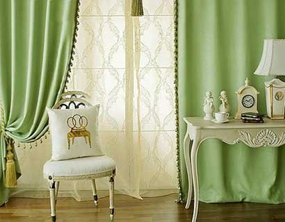 綠色是大自然的色彩,給人的感覺是清新舒適而自然,適合田園、現(xiàn)代等裝修風(fēng)格,綠色窗簾搭配在空間里,也會(huì)讓空間更加生機(jī)與活力氣息。