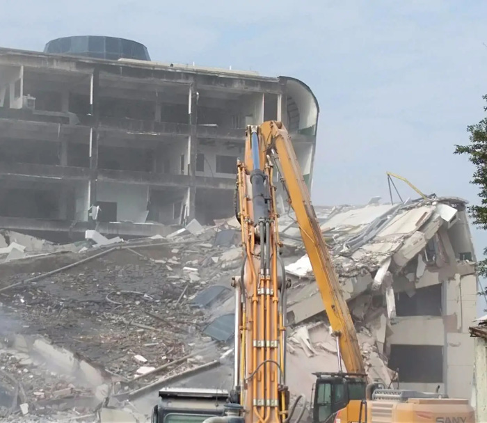 在這個案例中,施工順序合理,安全措施得當,取得了良好的拆除效果。同時,也需要注意環(huán)保和衛(wèi)生工作,避免對環(huán)境和居民造成不良影響。