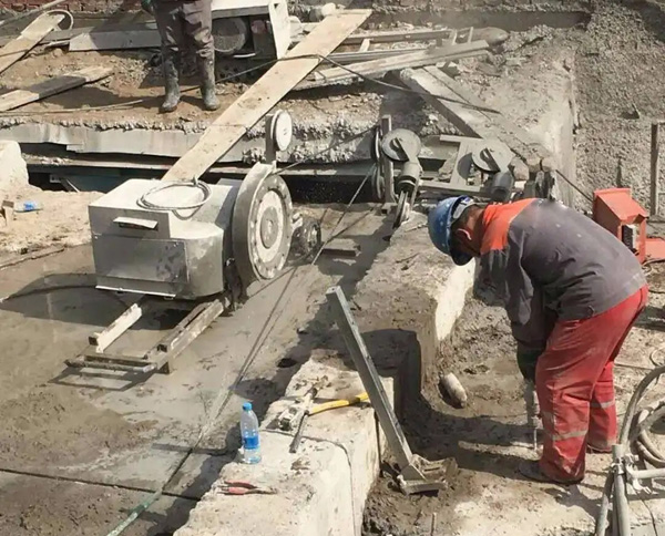 4. 切割施工:使用繩鋸設備對鋼筋混凝土結(jié)構(gòu)進行精準切割。根據(jù)需要,可以采用不同的切割方式,如直線切割、曲線切割等。