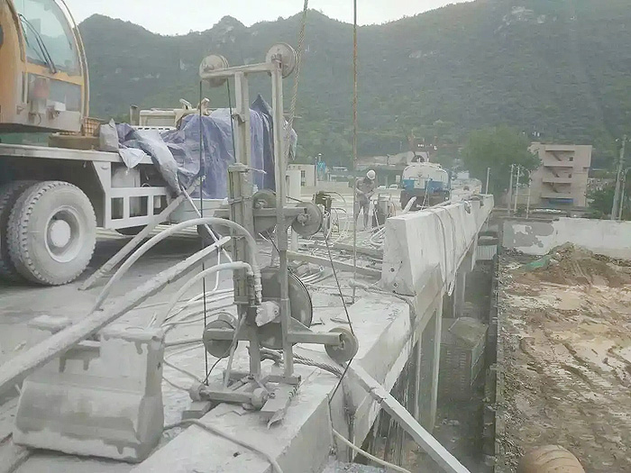 在橋墩表面涂抹適量的冷卻劑和切割劑,然后使用繩鋸切割設(shè)備對橋墩進行初步切割。初步切割的目的是將橋墩分割成較小的塊體,以便后續(xù)的精細切割。