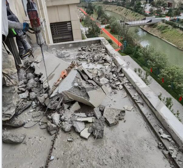 在切割拆除過(guò)程中**考慮結(jié)構(gòu)的穩(wěn)定性及安全性,混凝土結(jié)構(gòu)切割施工前,梁板底等部位應(yīng)采取臨時(shí)支撐措施,關(guān)鍵部位需對(duì)原結(jié)構(gòu)進(jìn)行加固,待加固構(gòu)件達(dá)到設(shè)計(jì)要求后方可進(jìn)行后續(xù)混凝土切割工作。
