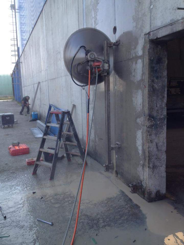 對(duì)于原有鋼筋混凝土結(jié)構(gòu),采用金剛石圓盤鋸片切割,原來(lái)的混凝土被完全拆除,并被分成幾部分。塊操作,切割時(shí)控制切削深度,不切入原結(jié)構(gòu)。針對(duì)原有復(fù)雜的混凝土結(jié)構(gòu),采用金剛石繩鋸切割和金剛石筒鋸鉆床組合進(jìn)行鉆孔和切割。